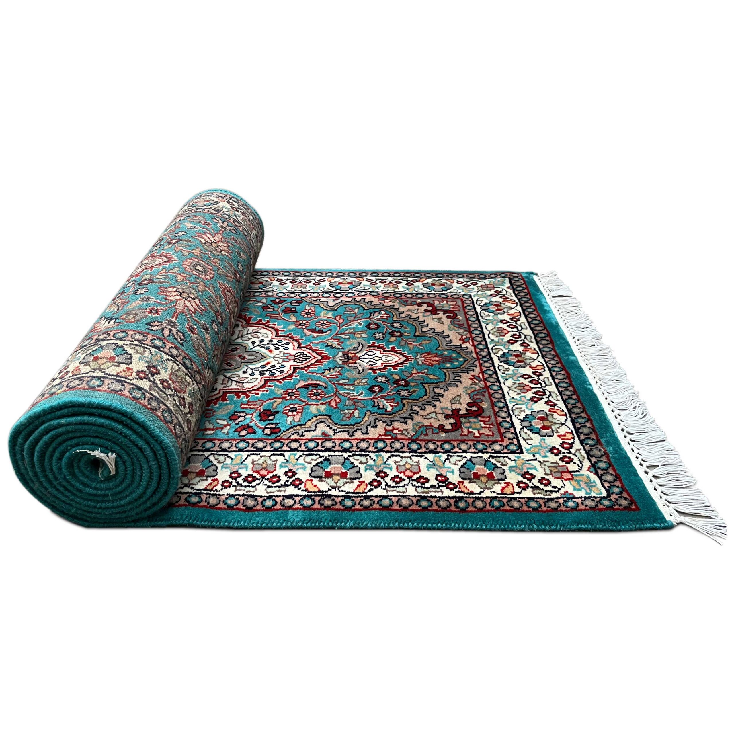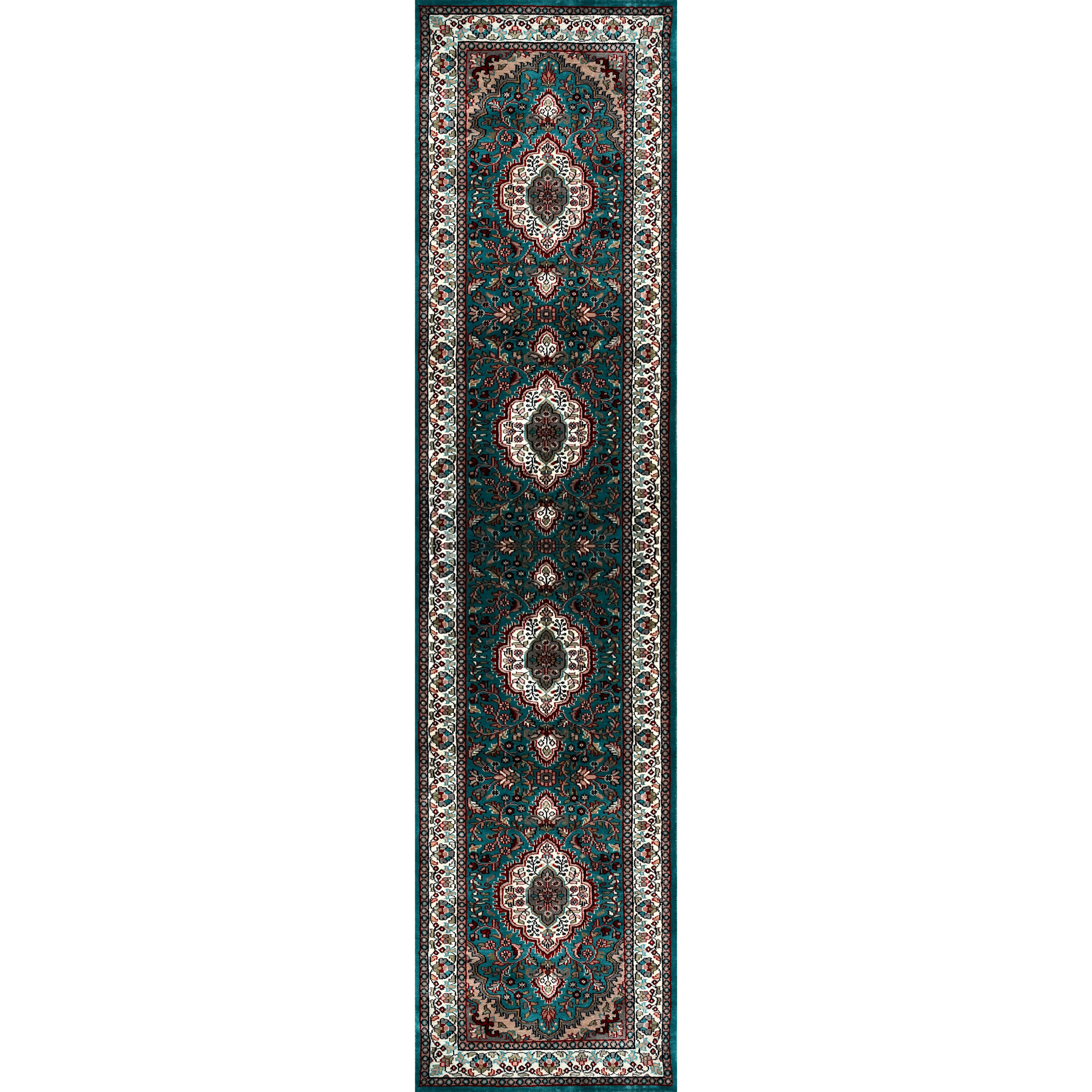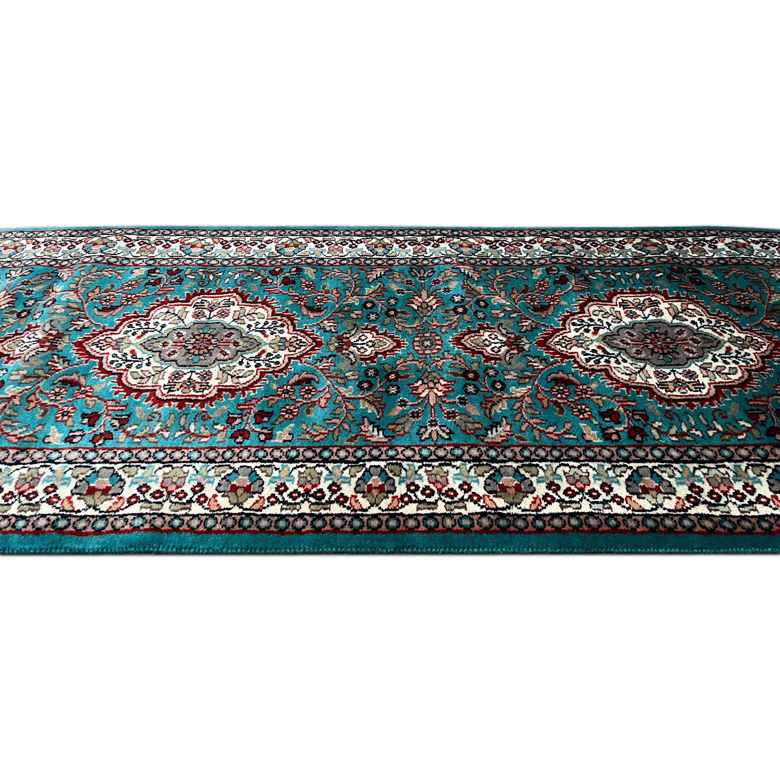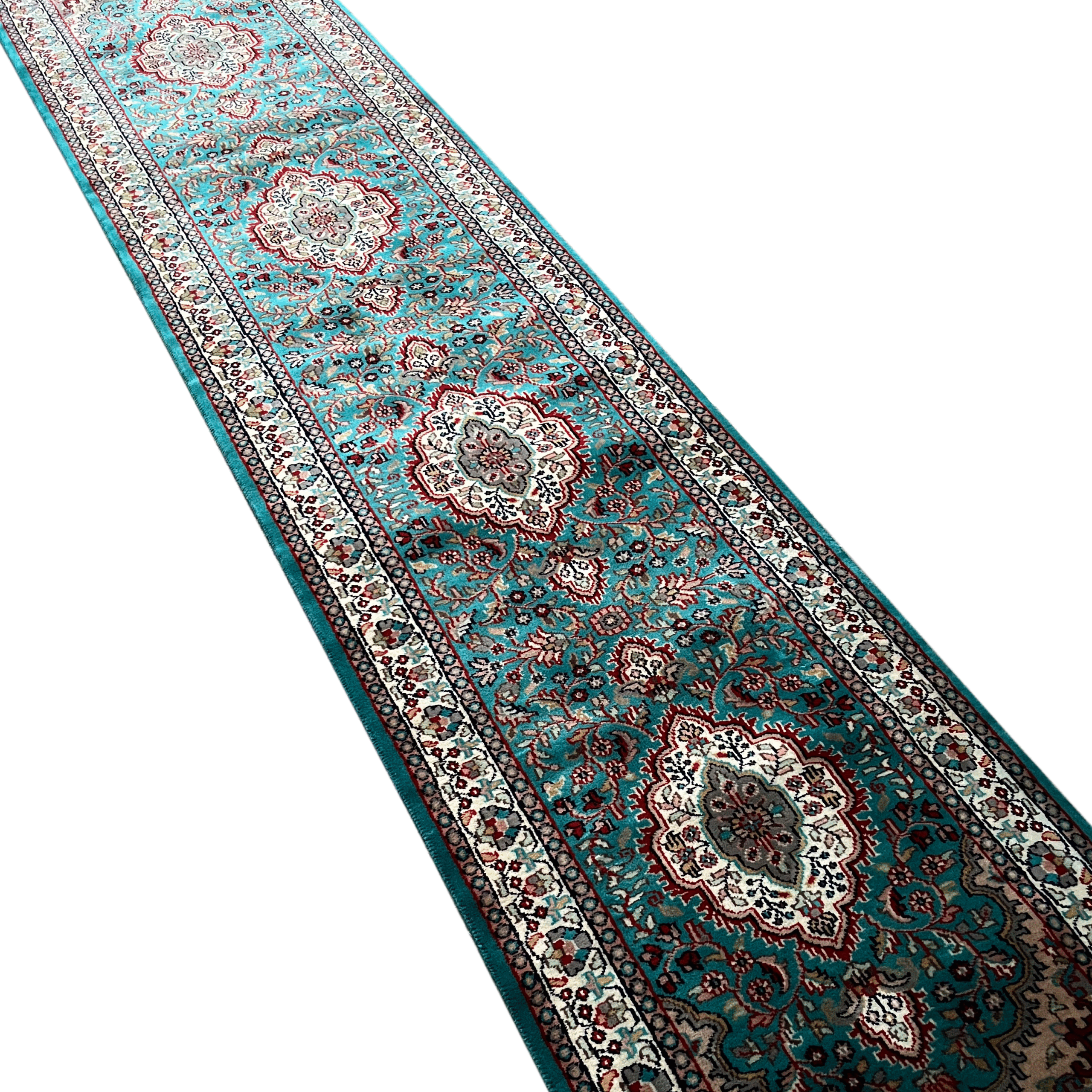 2.5 by 10 feet handmade carpet in Persian design, crafted by rural artisans in India.