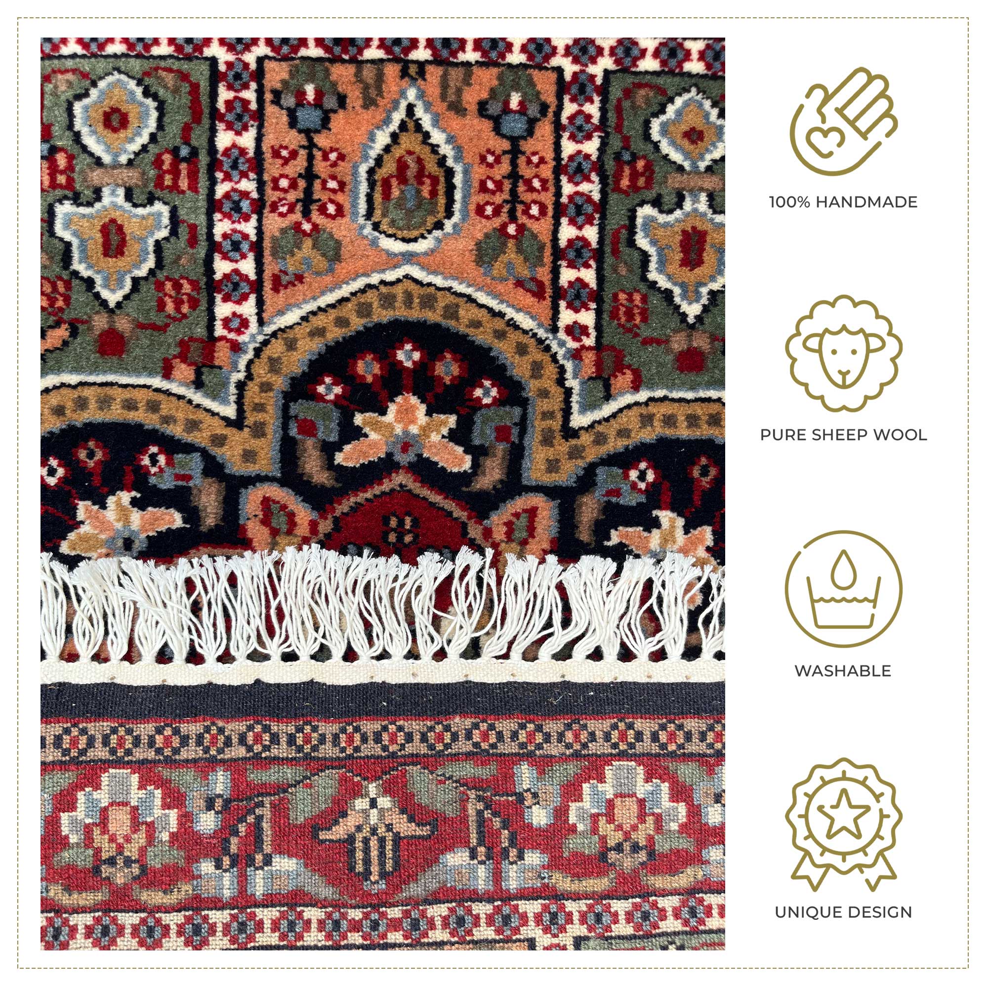 • Each rug is made with passion, intricacy, and fine detailing—making it unique and long-lasting.