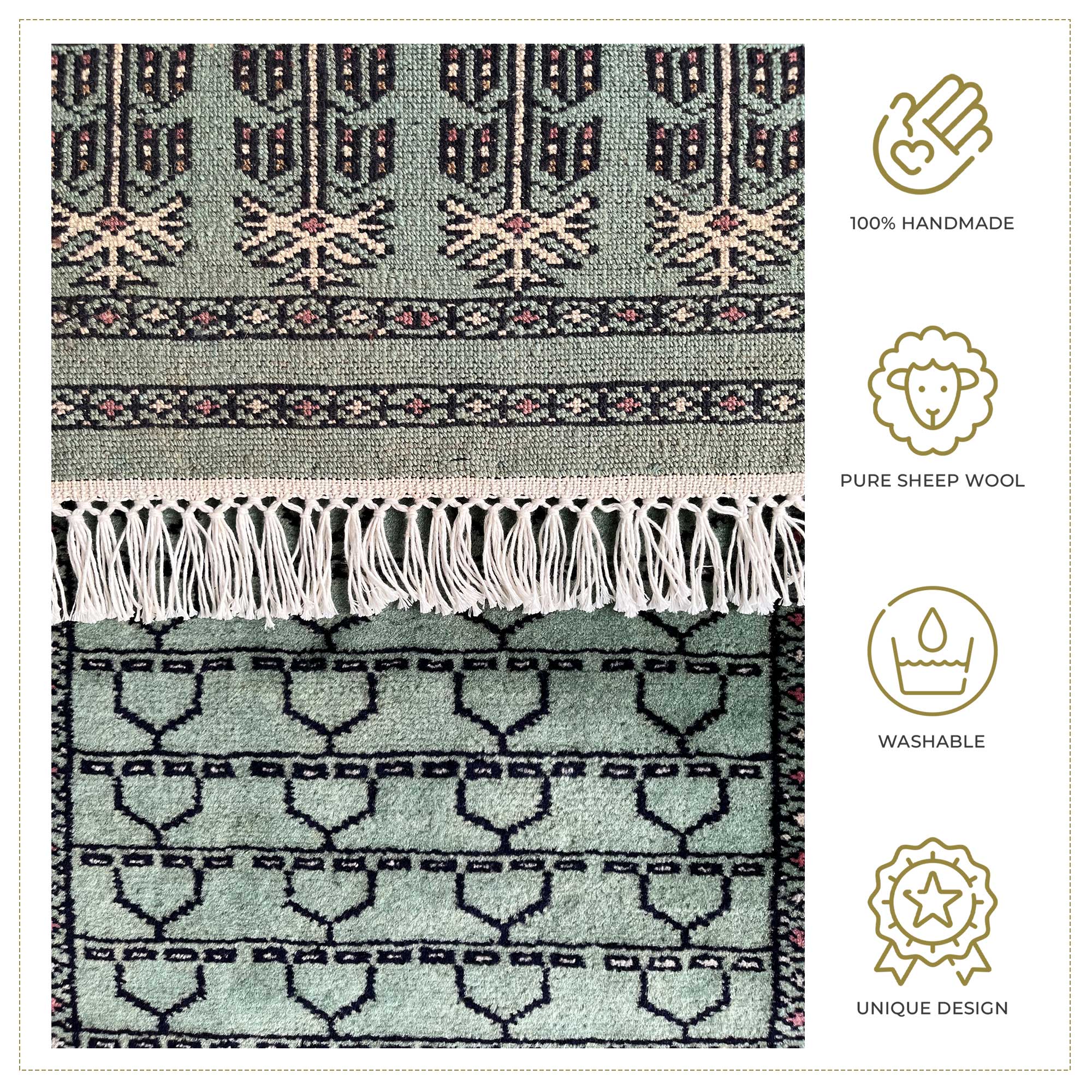 Be the first to review “2×6 ft Hand Knotted Wool Carpet Light Green Parda”