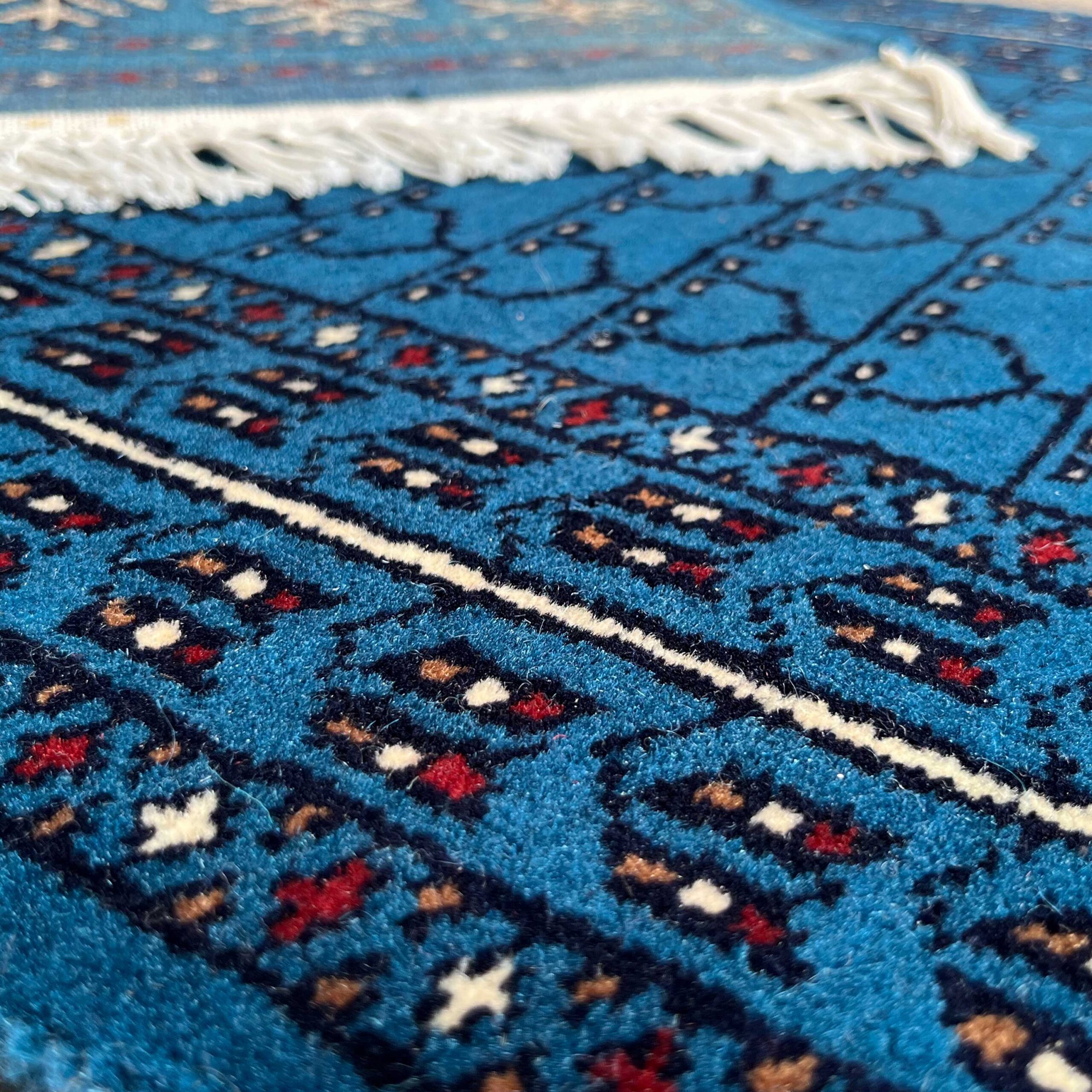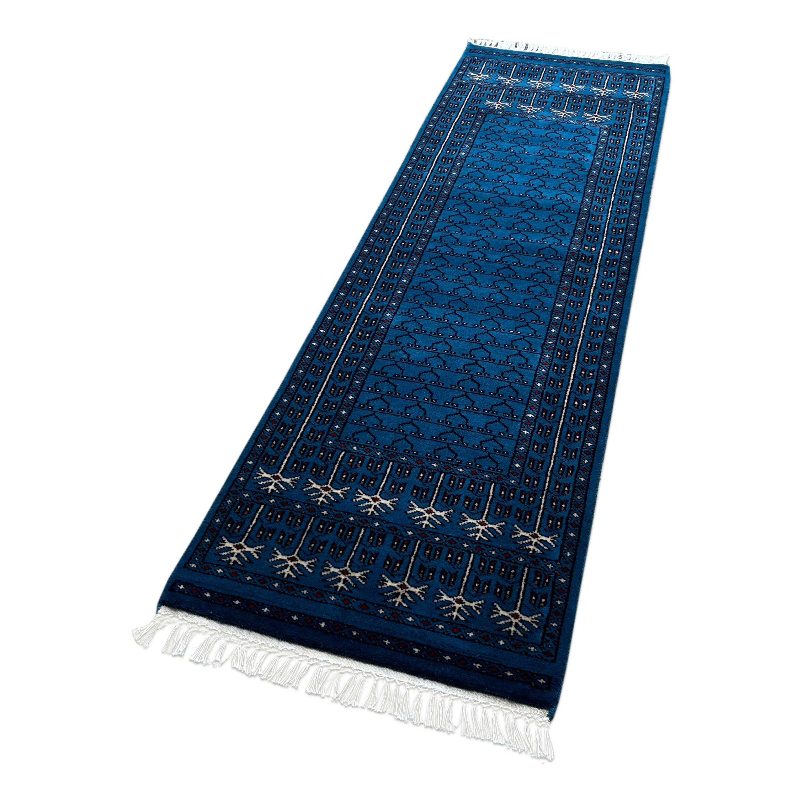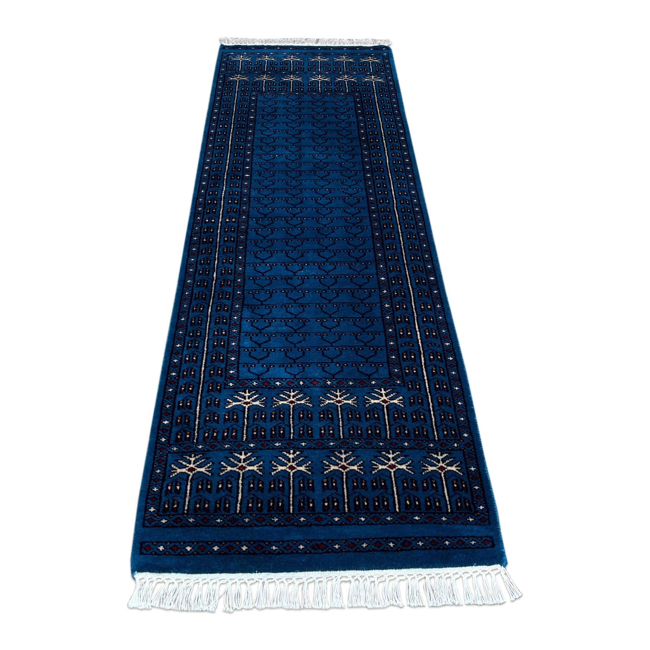 2 by 6 feet runner carpet in blue color, traditional unique parda design, handmade by skilled rural artisans.