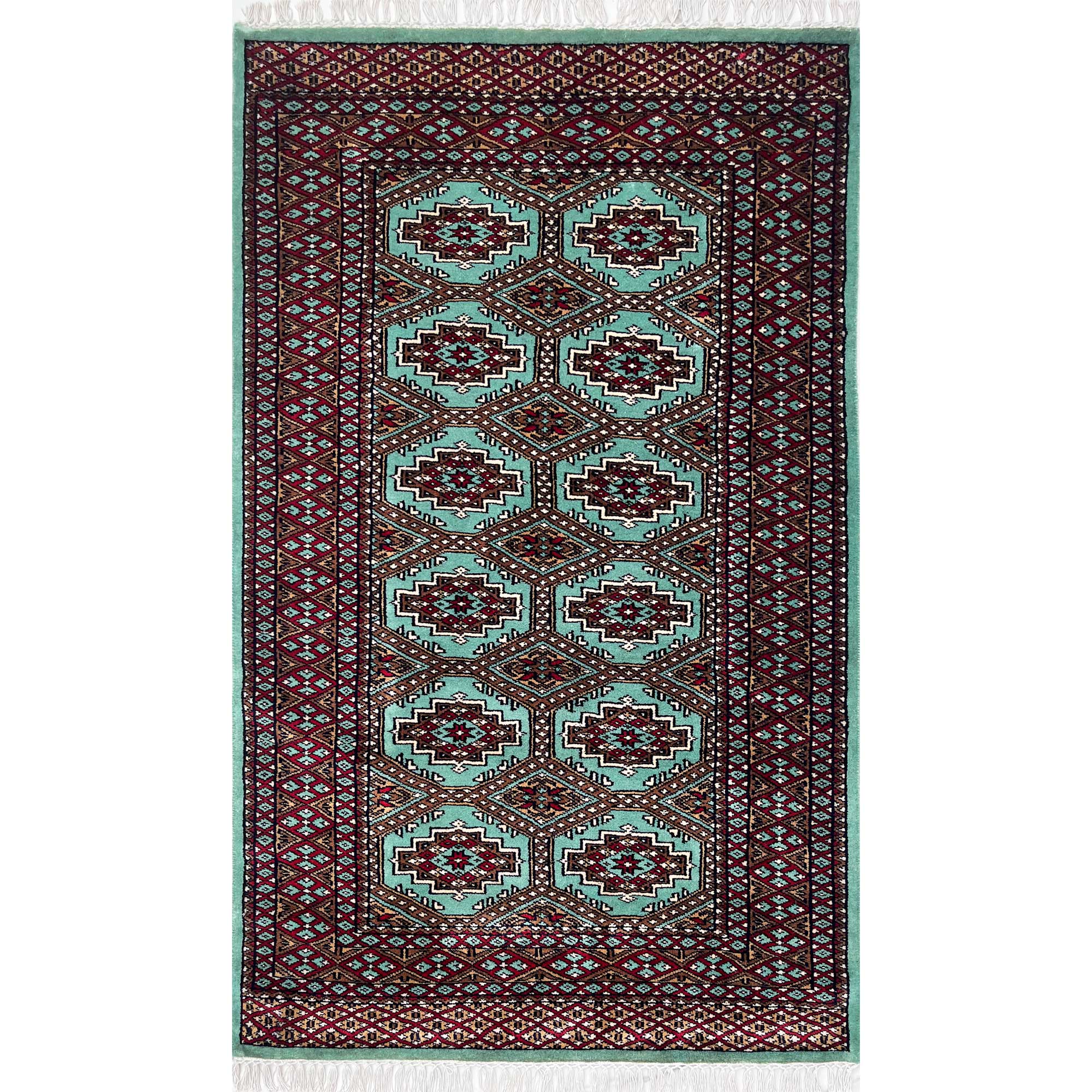 Be the first to review “3×5 ft Hand Knotted Woolen Rug Bukhara Sea Green”