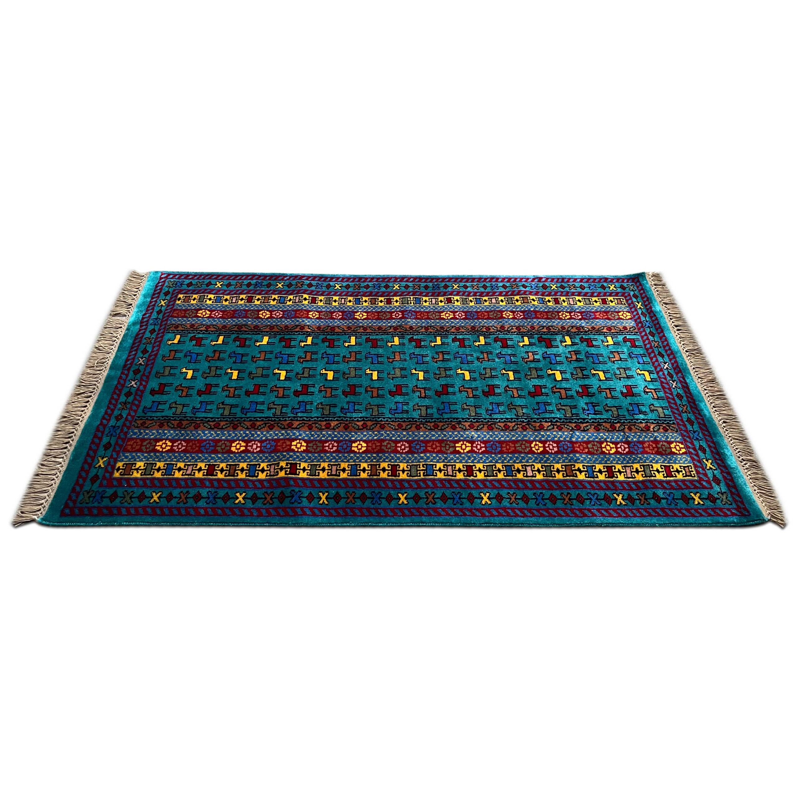 This 3×5 ft wool carpet features a distinct Bakri pattern with a refreshing turquoise color. Woven by experienced artisans, the rug combines durability with artistic detailing, making it ideal for bedrooms, halls, or decor corners. The smooth wool texture adds comfort and warmth.