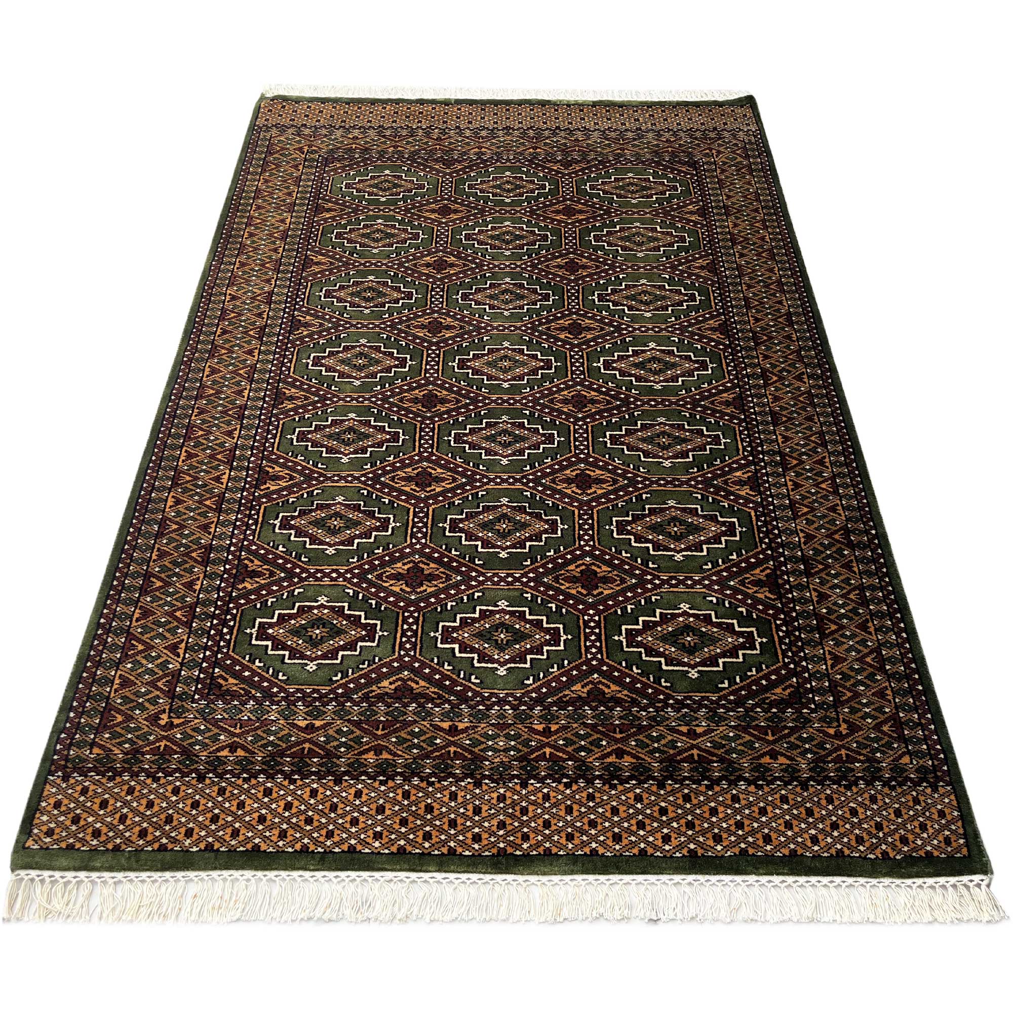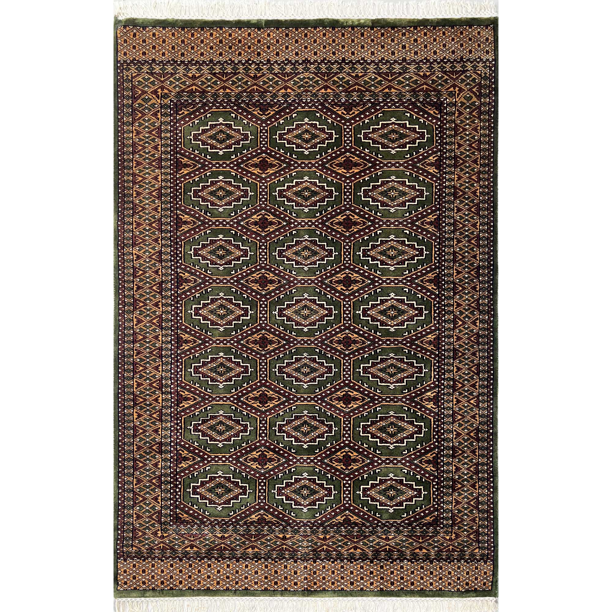Be the first to review “4×6 ft Hand Knotted Woolen Rug Gul Bukhara Green”