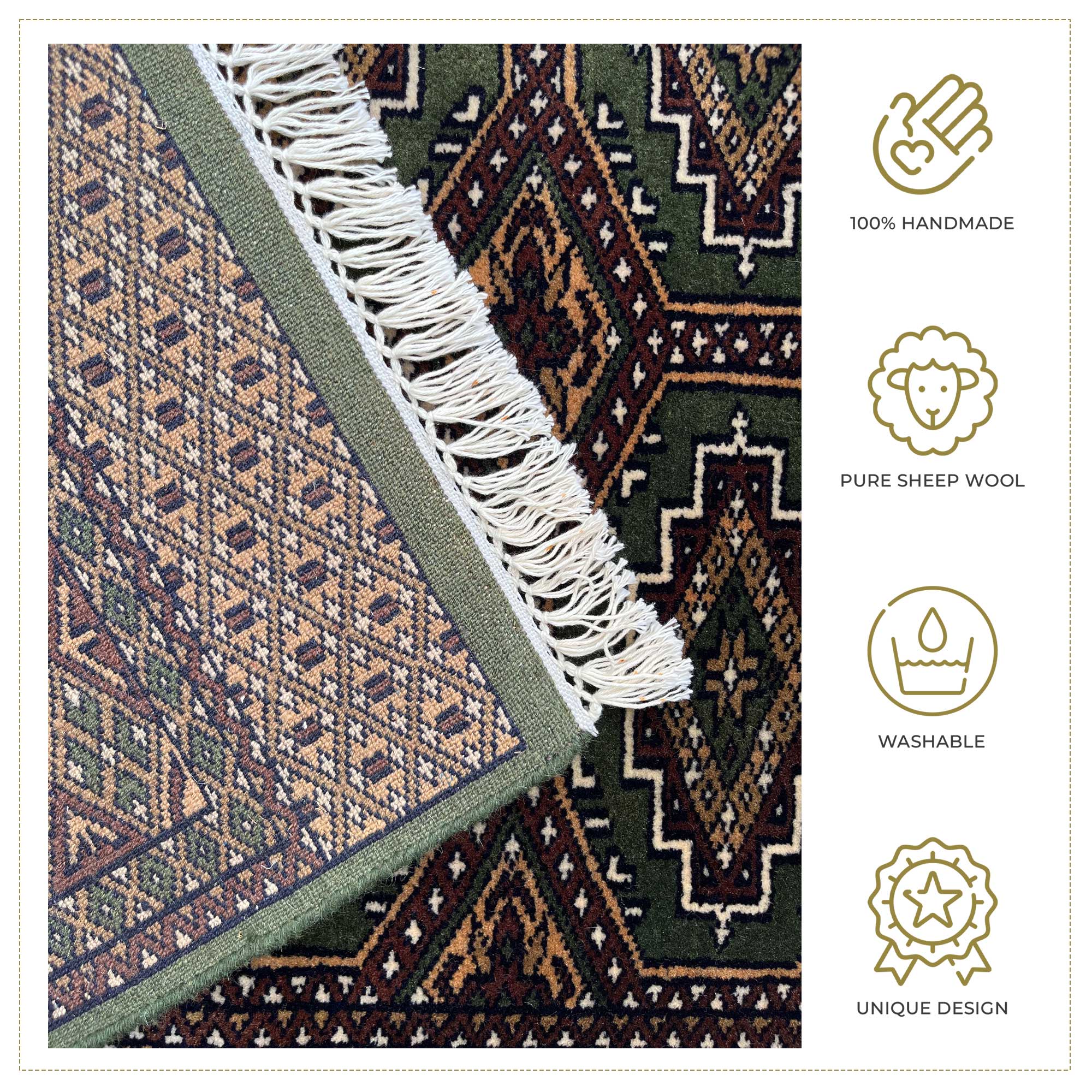 • Each rug is made with passion, intricacy, and fine detailing—making it unique and long-lasting.