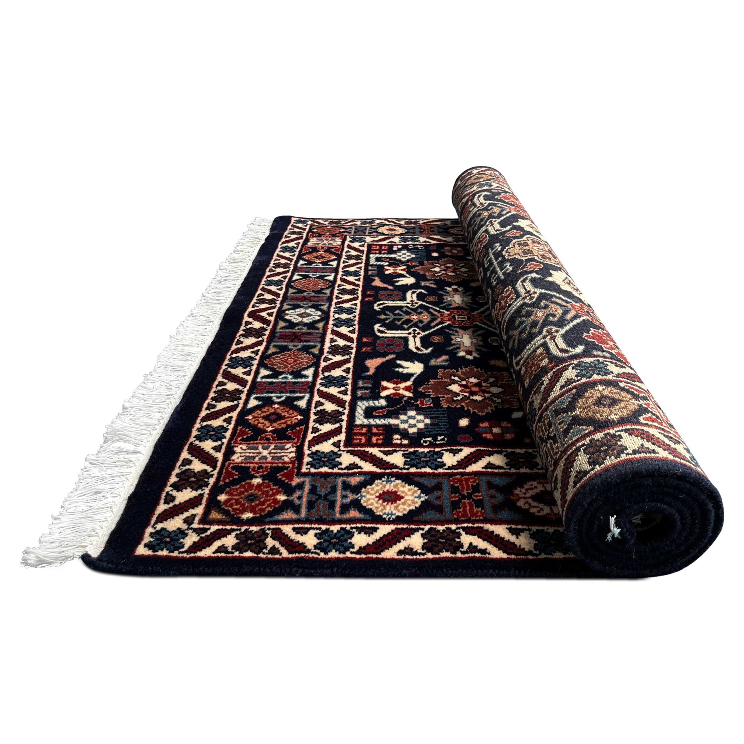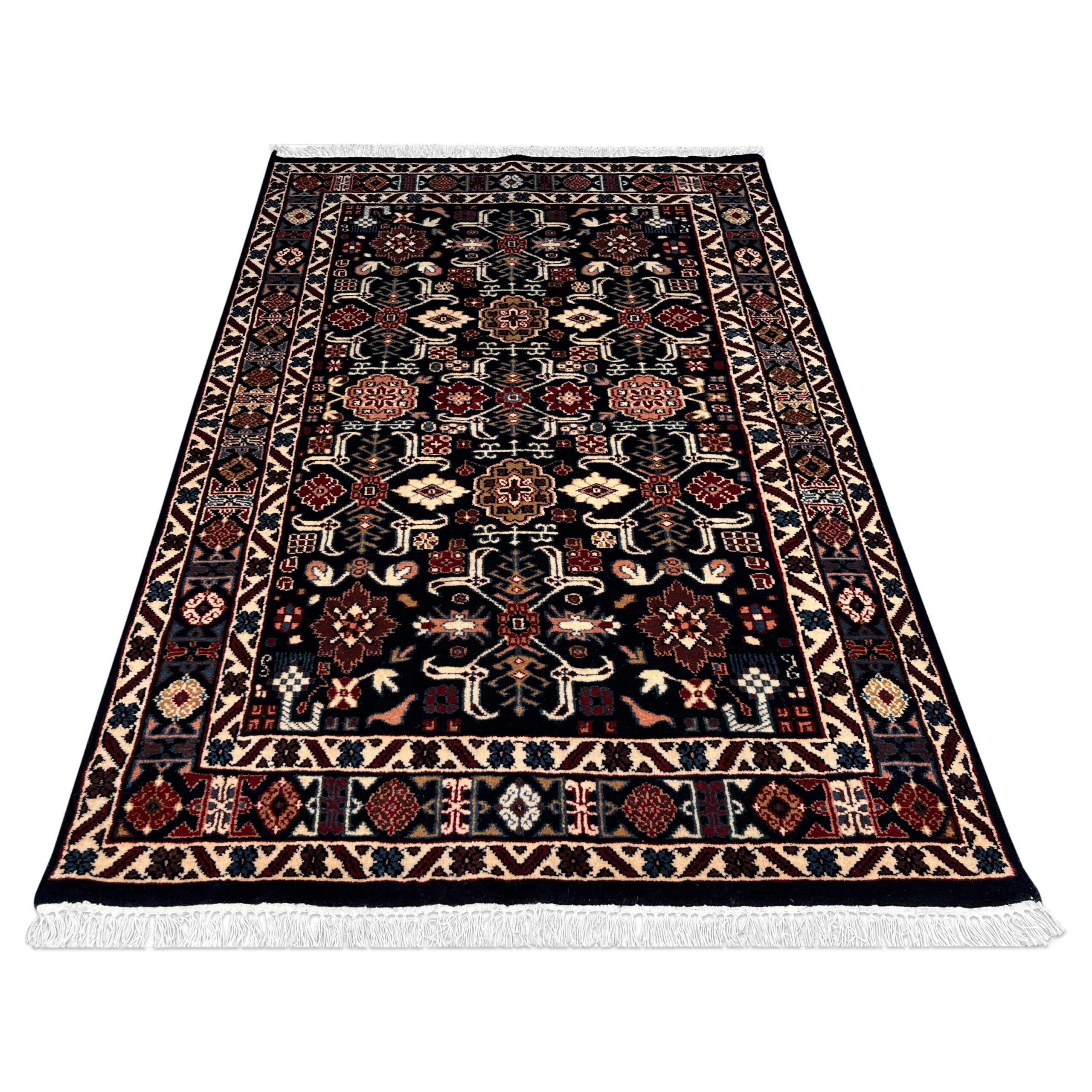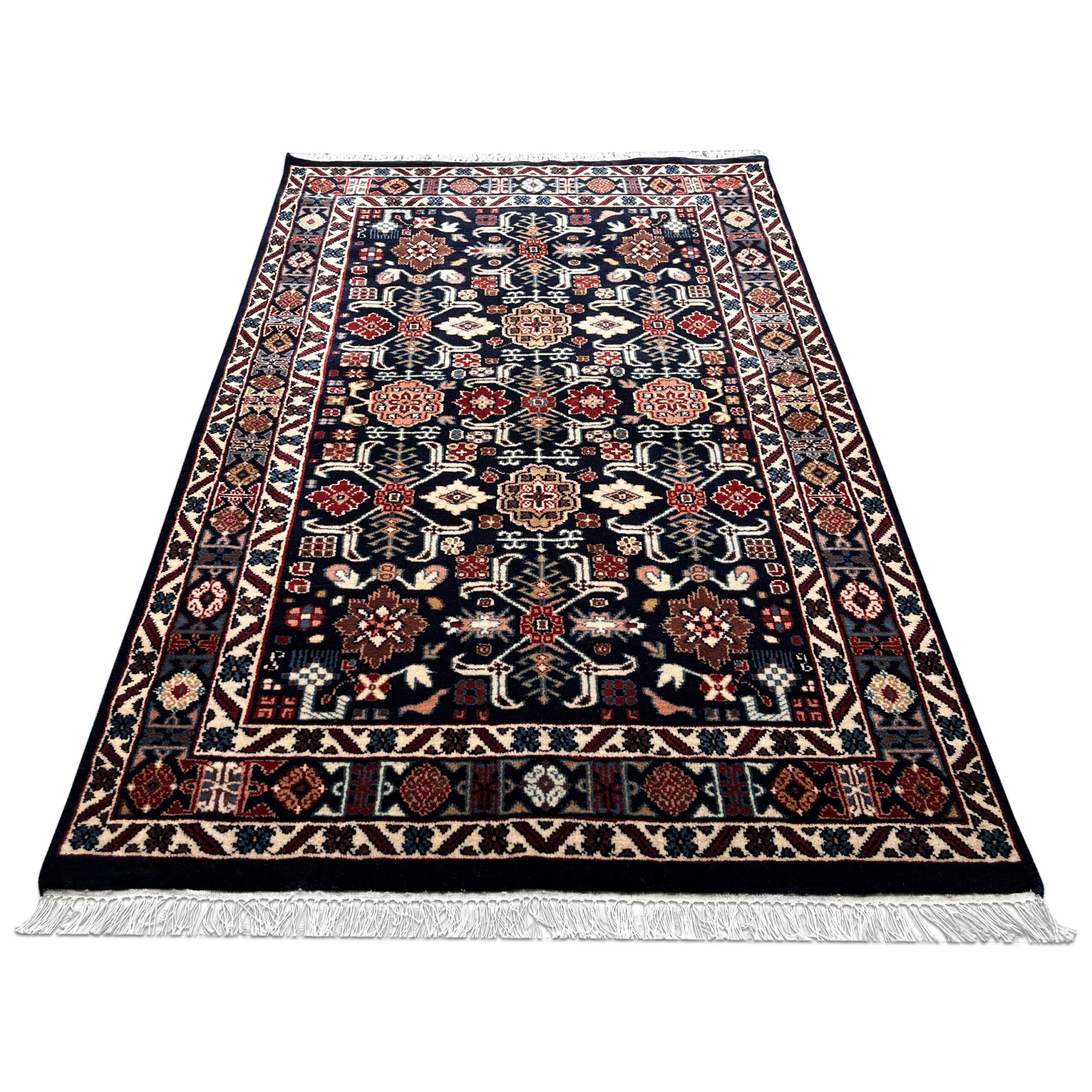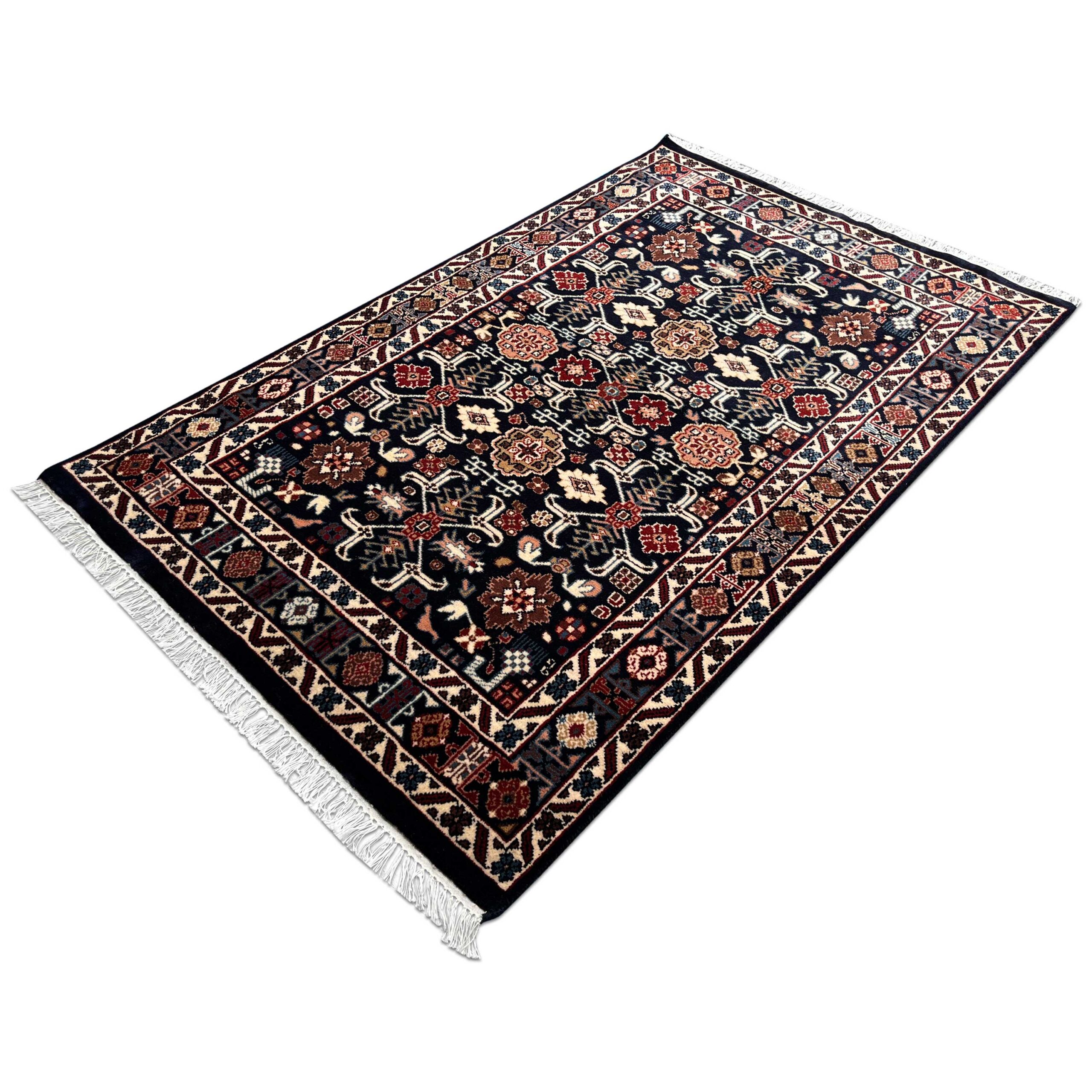 This 4×6 ft Rooz design handmade carpet is crafted with rich black wool and detailed patterns that highlight fine craftsmanship. The deep color and intricate motifs create a luxurious and timeless appeal. Perfect for both contemporary and traditional spaces, this rug brings elegance, durability, and warmth to your decor.