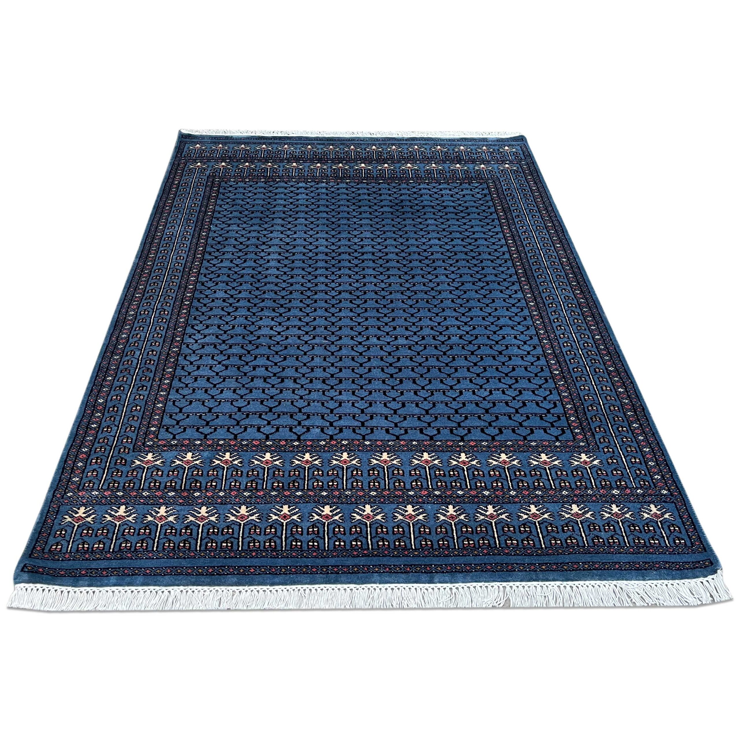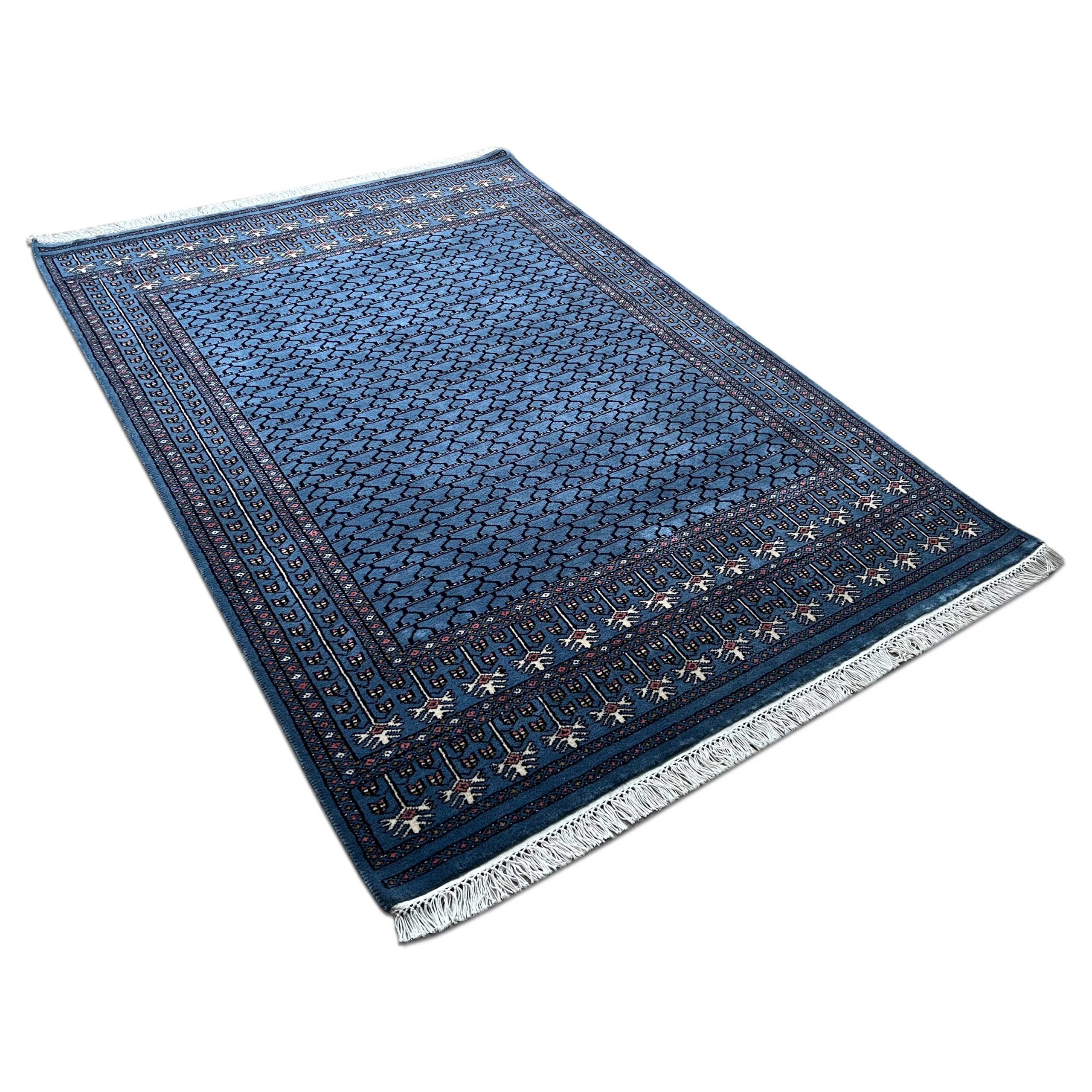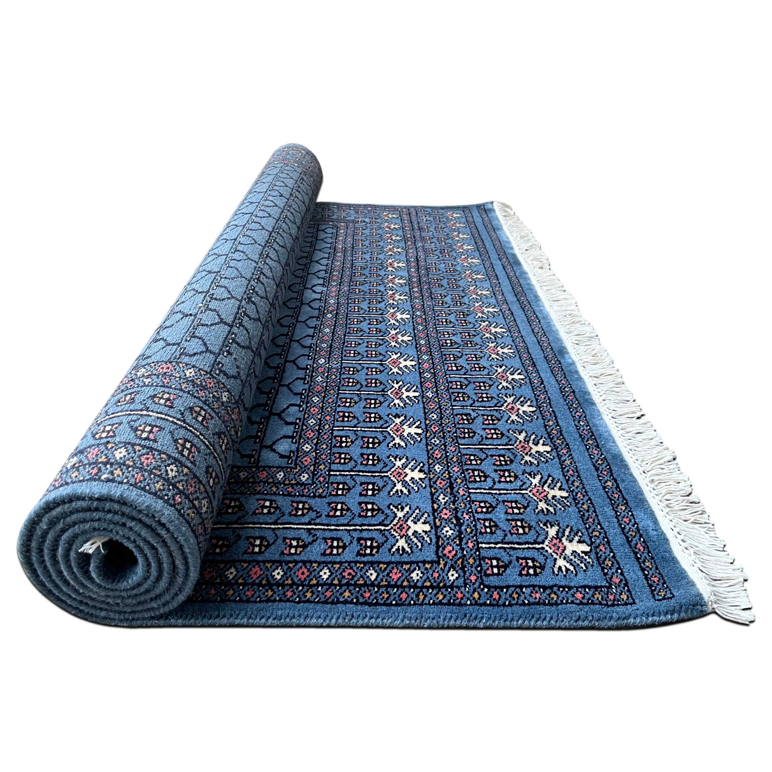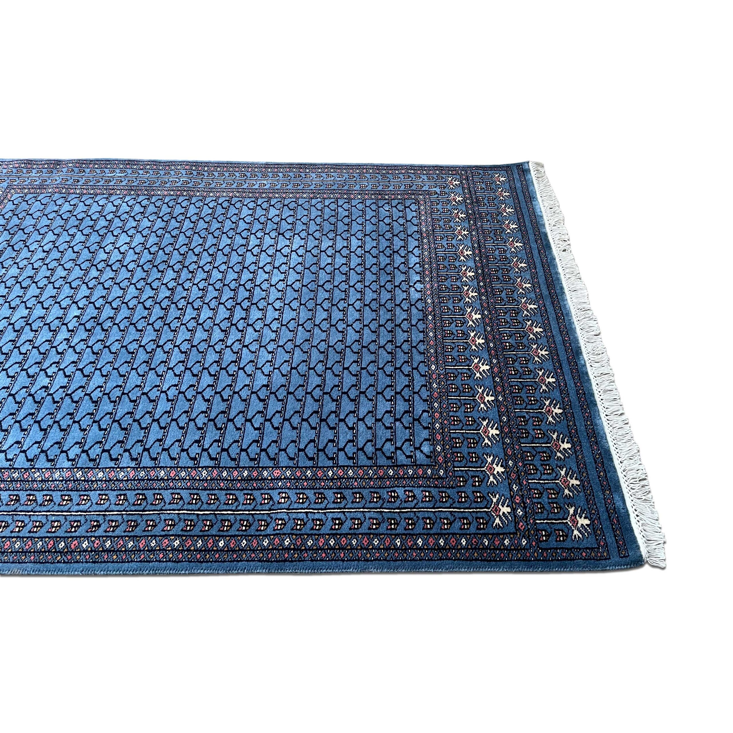 Add modern elegance to your space with this 5×7 feet bluish gray Parda design carpet. The cool-toned color palette offers a luxurious feel, while the bordered traditional pattern maintains a timeless aesthetic. Handmade by experienced weavers of Gwalior using premium wool, this rug is soft, durable, and perfect for bedrooms, living rooms, offices, or formal spaces. The bluish gray shade blends beautifully with contemporary interiors.
