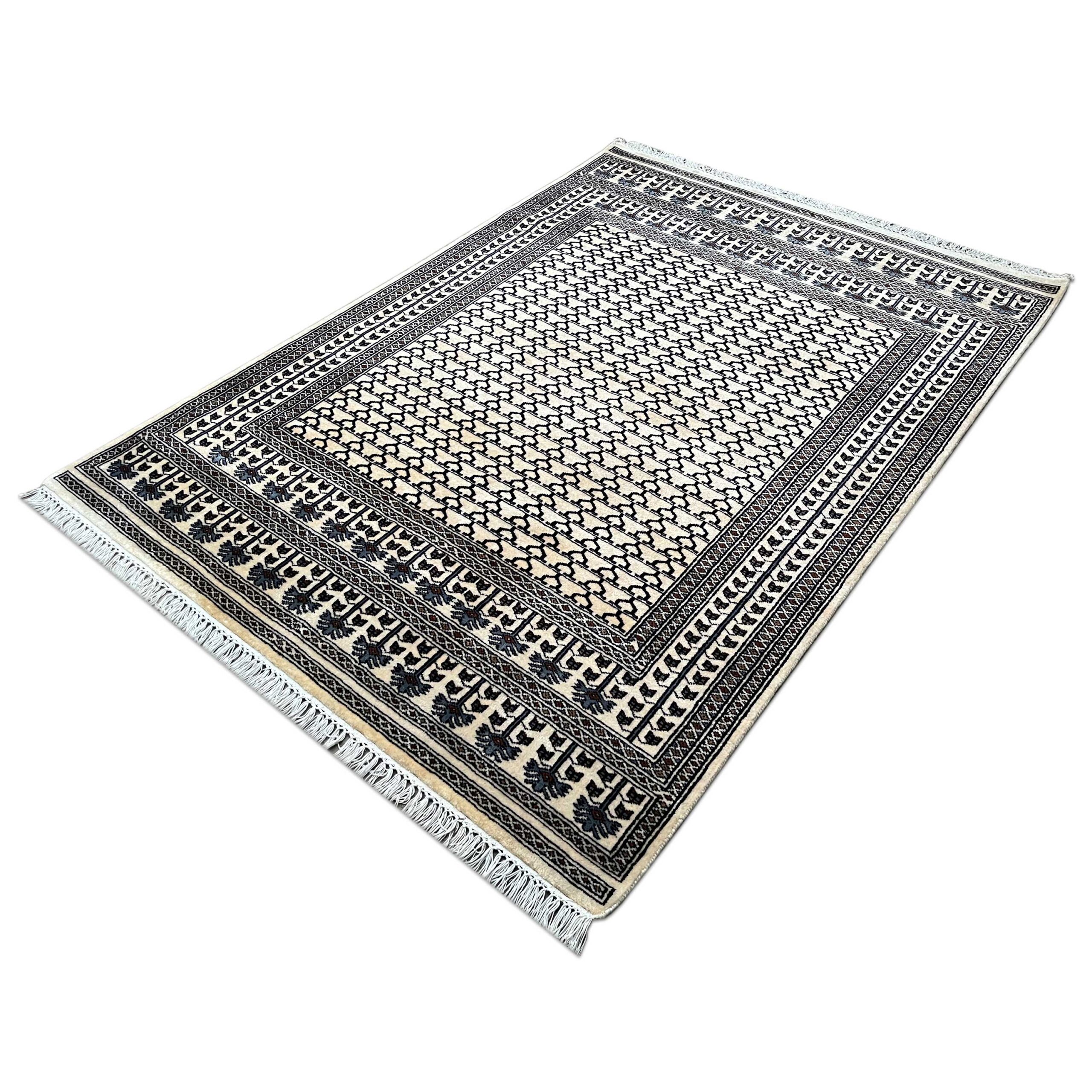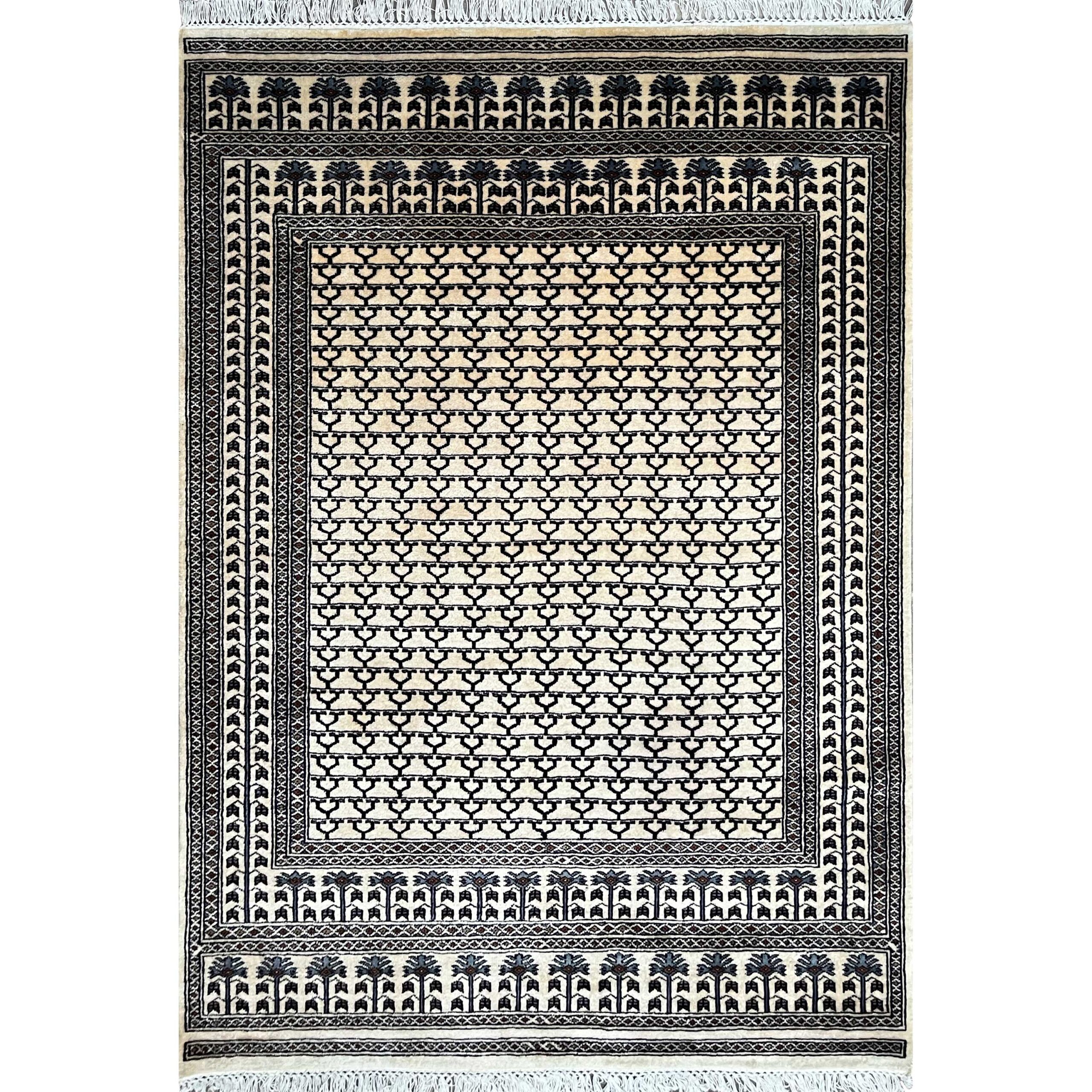 This 5×7 feet white Parda carpet is a symbol of purity, refinement, and artisan skill. Hand-knotted with high-quality wool, it features a classic border design that adds elegance to any environment. Light, bright, and sophisticated, the rug works beautifully in minimalist, modern, and premium interior setups. Its fine craftsmanship makes it a perfect piece for homes, offices, or boutique spaces.