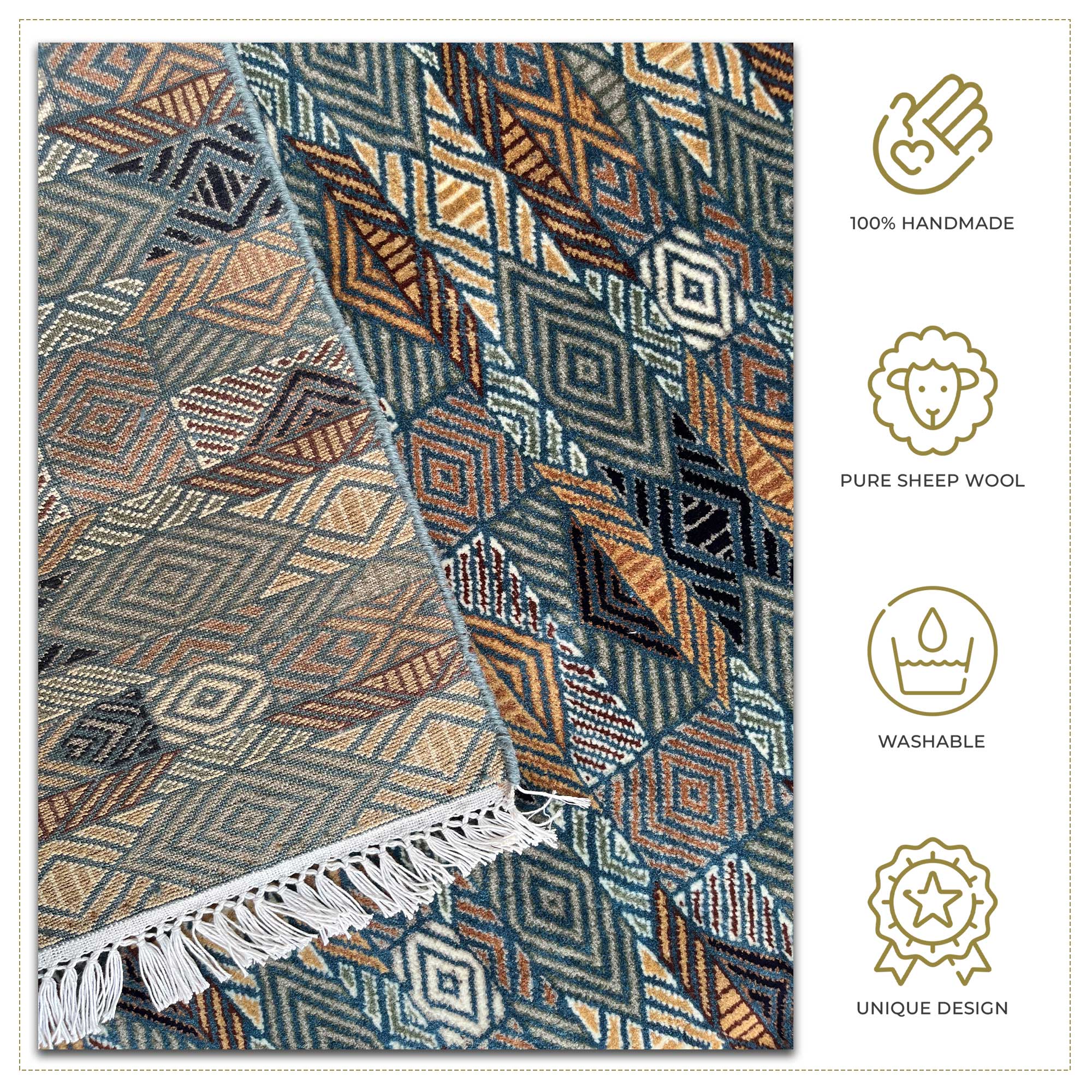 - Each rug is made with passion, intricacy, and fine detailing—making it unique and long-lasting.